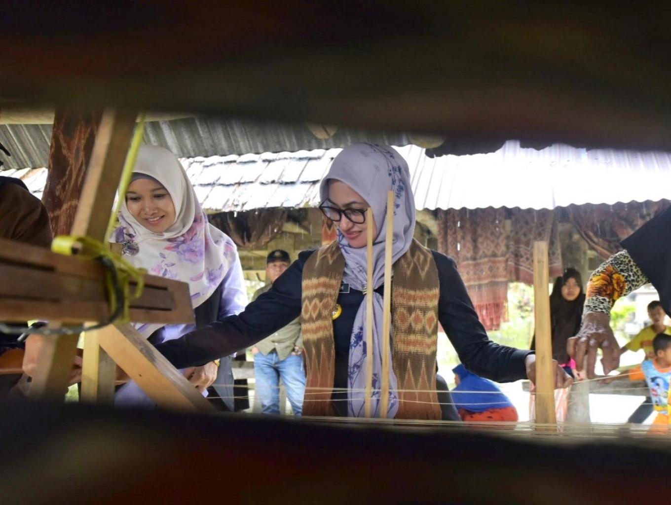 Pengunjung dapat secara langsung melakukan proses menenun diambil mengabadikan gambar