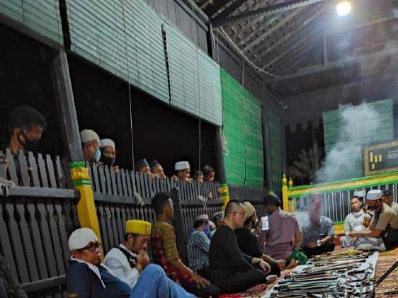 Meantari (memberikan) wadai banjar dan menyuguhkan peninggalan sejarah yaitu benda pusaka pada bulan maulid
