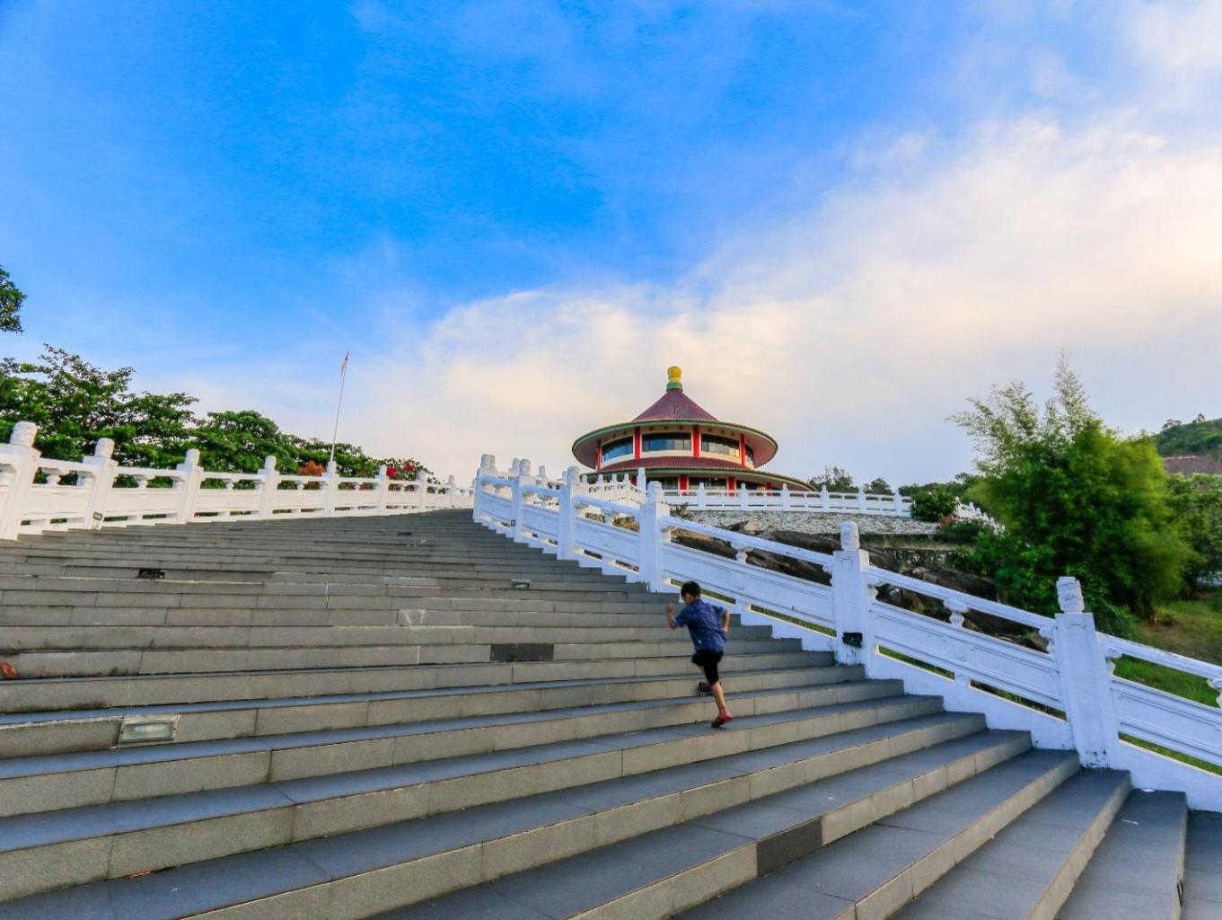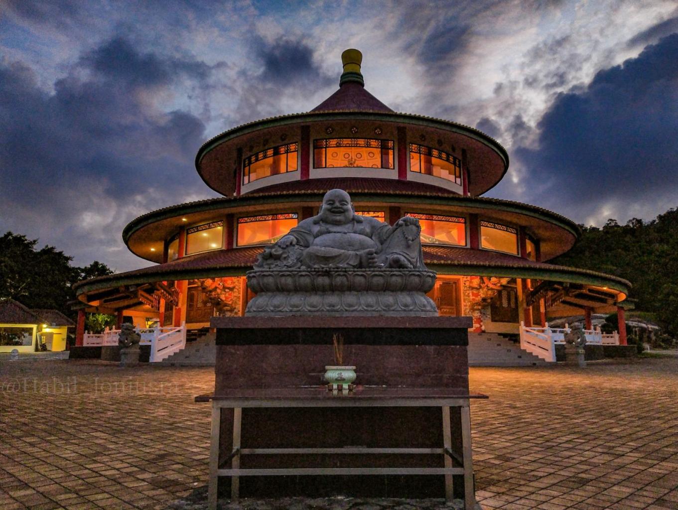 Puri Tri Agung yang merupakan simbol persatuan dari tiga ajaran Tri Dharma yaitu Taoisme, Buddhisme, Konfusianisme menjadi destinasi wisata di Desa Rebo yang sangat diminati oleh wisatawan lokal maupun luar. Konstruksi bangunan yang bagus dan pemandangan alam yang indah menjadi daya tarik pengunjung untuk berwisata. Wisata religi ini berkolaborasi dengan Pantai Batu Ketak karena lokasi yang berdekatan, sehingga wisatawan dapat sekaligus menikmati dua wisata, dengan pemandangan dari atas yang indah. Akses menuju lokasi pun sangat mudah karena jalan sudah aspal.