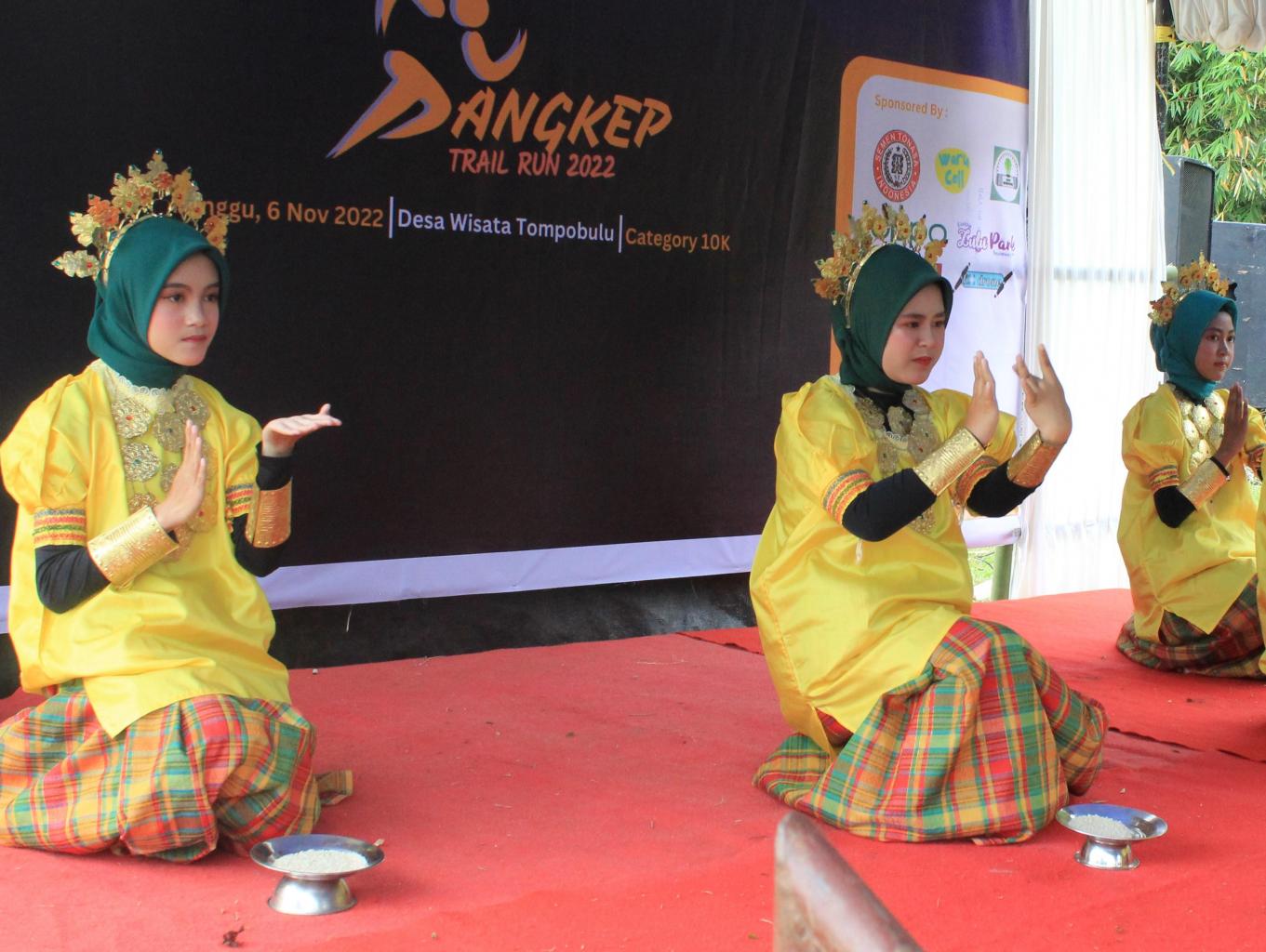 seni tari ini diperangkan pemuda pemudi desa secara aktraktif dan kolaboratif,lenggak lenggonya,lambaian tangannya menandakan keramahan dan telulusan terpancar dari senyum yang di suguhkan terhadap para pengunjung di desa tompo Bulu.,untuk menyaksikan seni tari ini pun tak akan susah karena telah di bina sesuai tingkatan usia di bangku sekolah sebagai wujud pelestarian adat seni dan budaya bangsa.