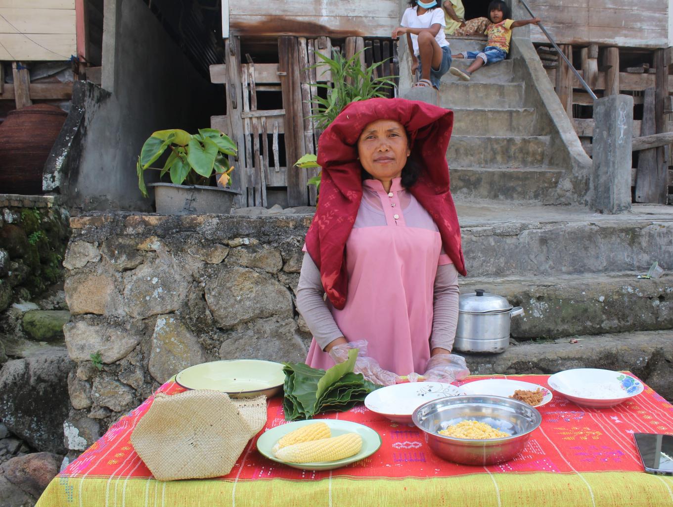 - Sebagai variasi, dapat pula campurkan semua bumbu yang sudah dihaluskan, jagung muda dan kelapa parut dalam satu wadah kemudian tumbuk hingga tercampur dan memiliki tekstur yang kasar.