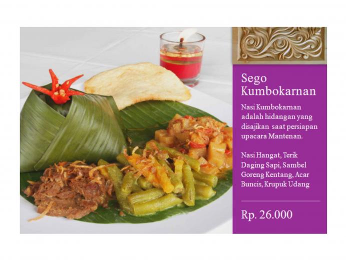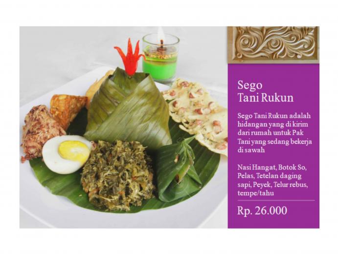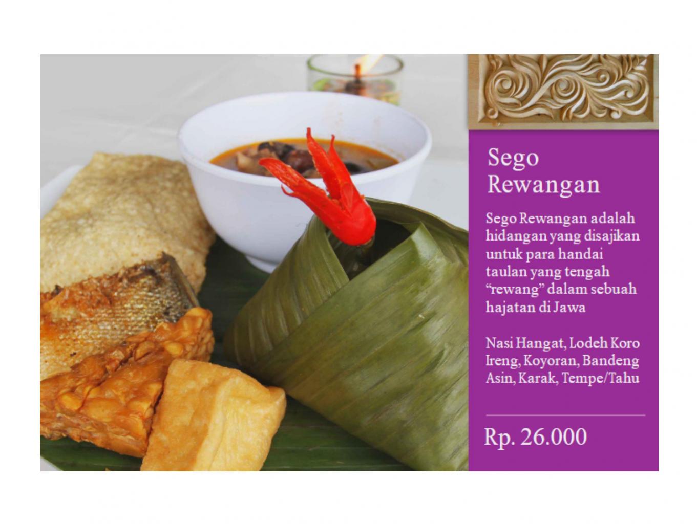 Sego Rewangan adalah hidangan yang disajikan untuk para handai taulan/ tetangga kampung yang tengah membantu dalam pelaksanaan hajatan pernikahan