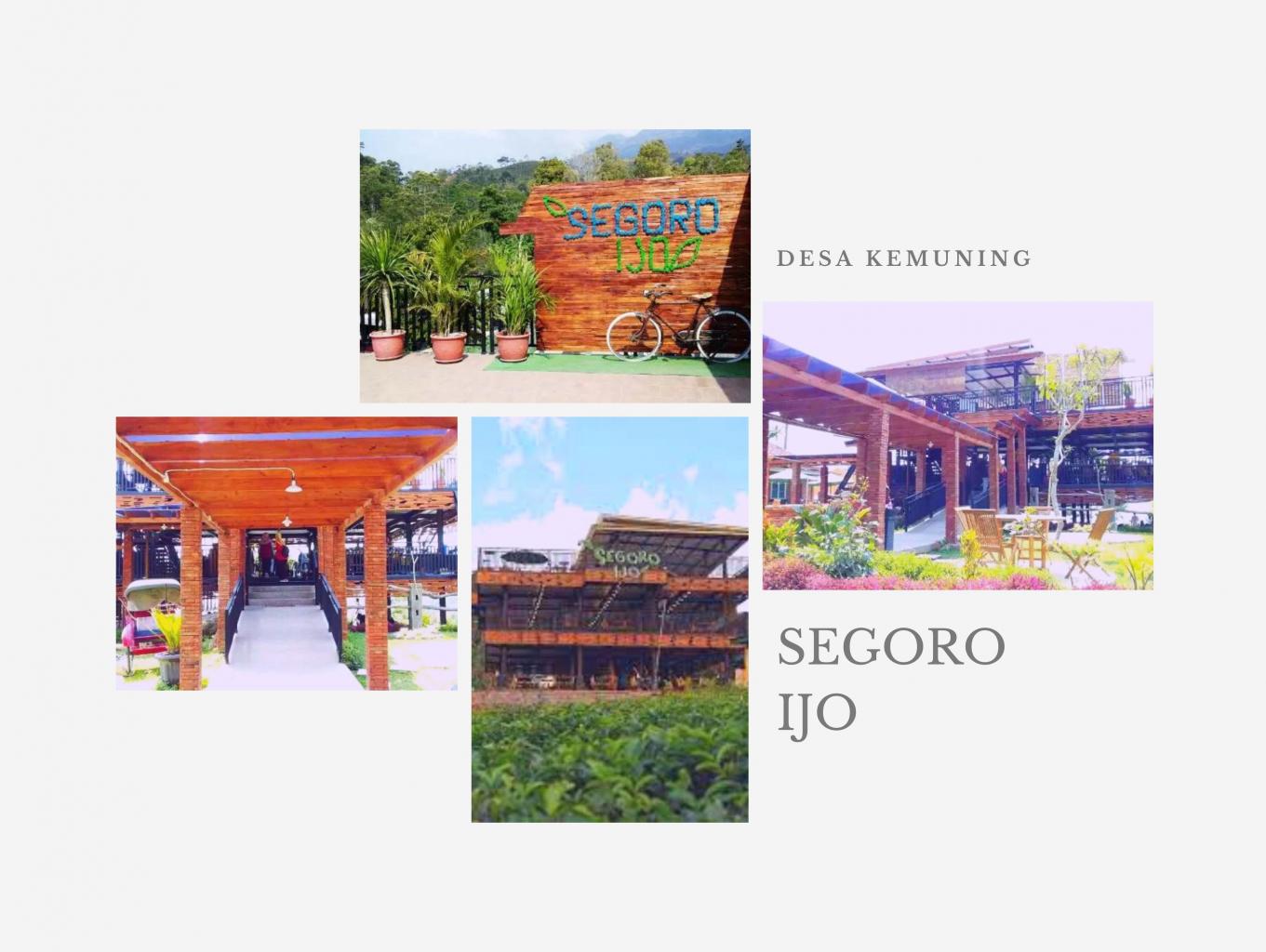 Segoro Ijo merupakan restoran keluarga yang baru dibuka pada Juni 2019. Berada di kawasan wisata Kebun Teh Kemuning, tempat makan ini bisa jadi alternatif bersantap bersama keluarga, baik untuk sarapan, makan siang, maupun makan malam. Suasananya juga oke untuk sekedar ngumpul bareng.