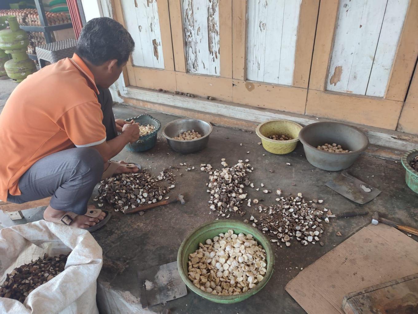 Usaha Pengupasan Kemiri Tradisional